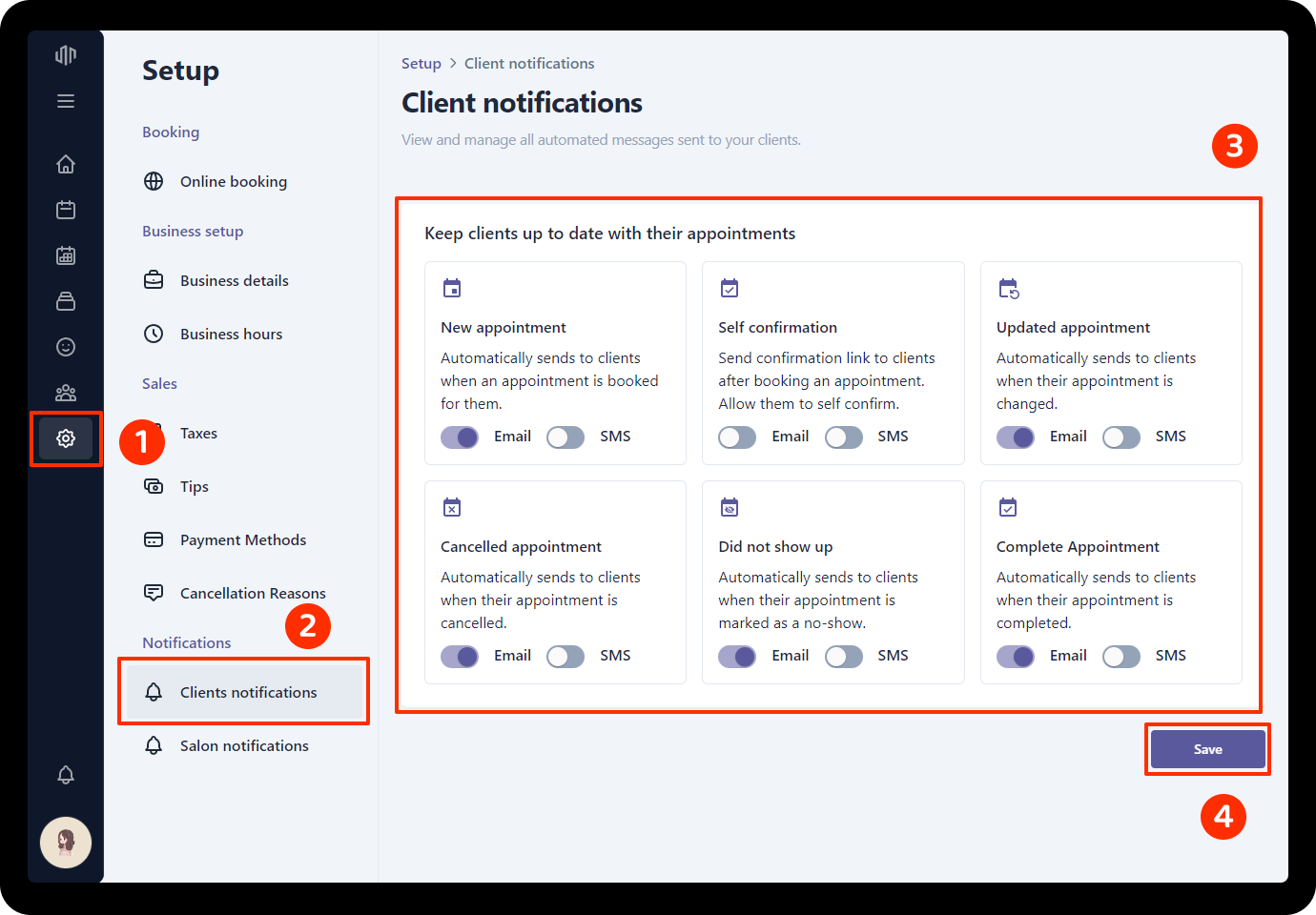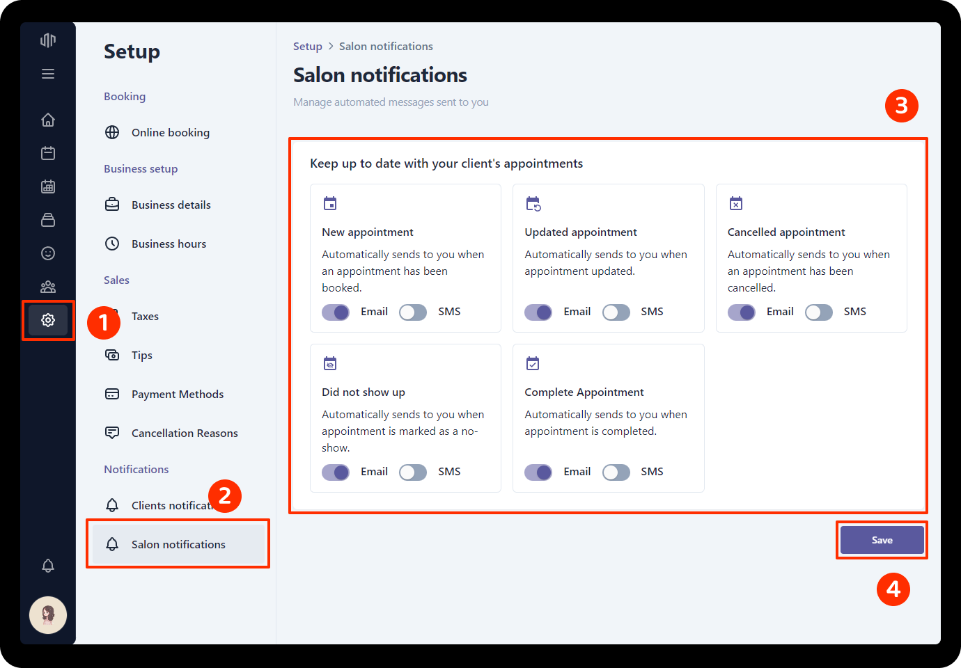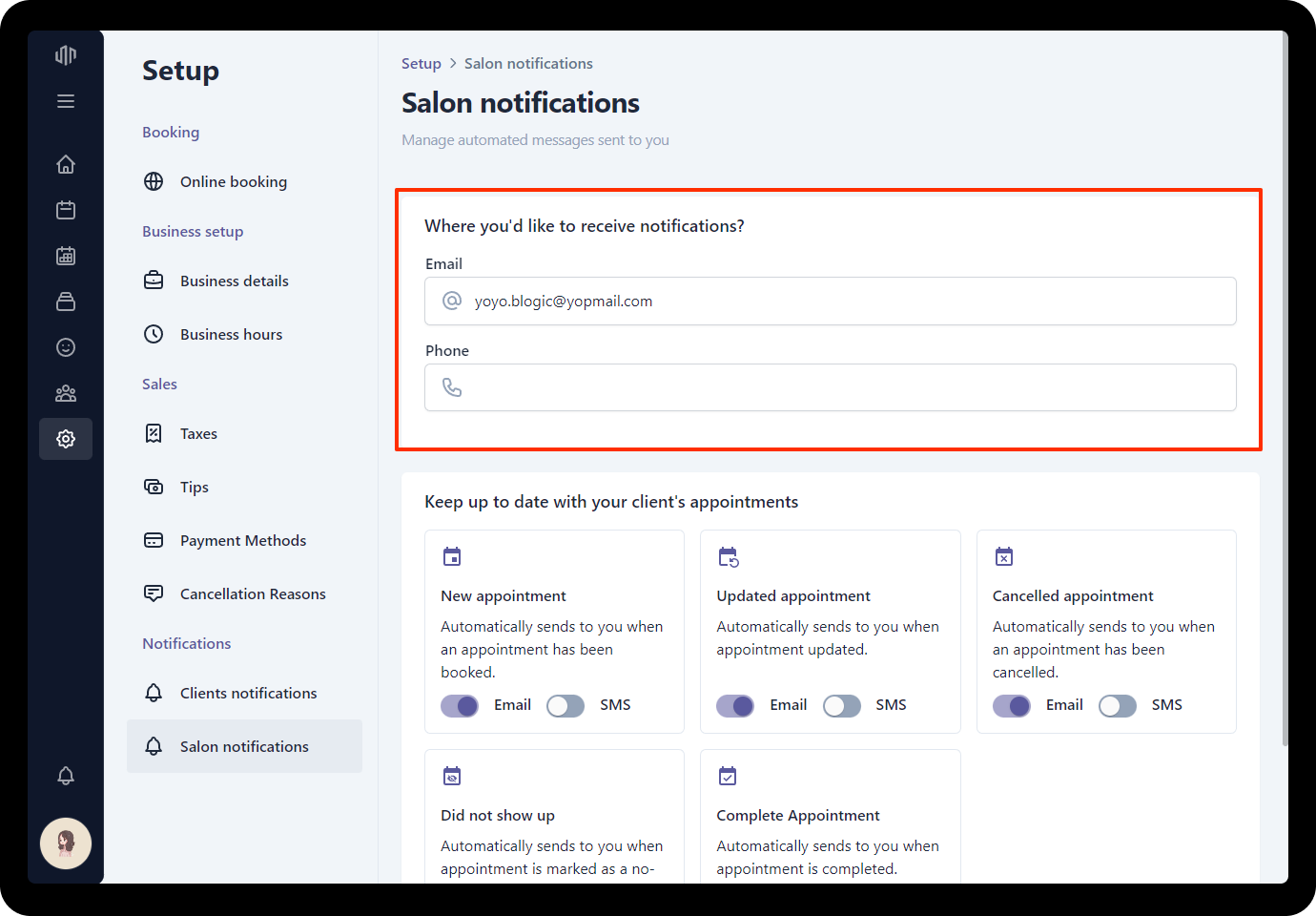 - Click Salon notifications section