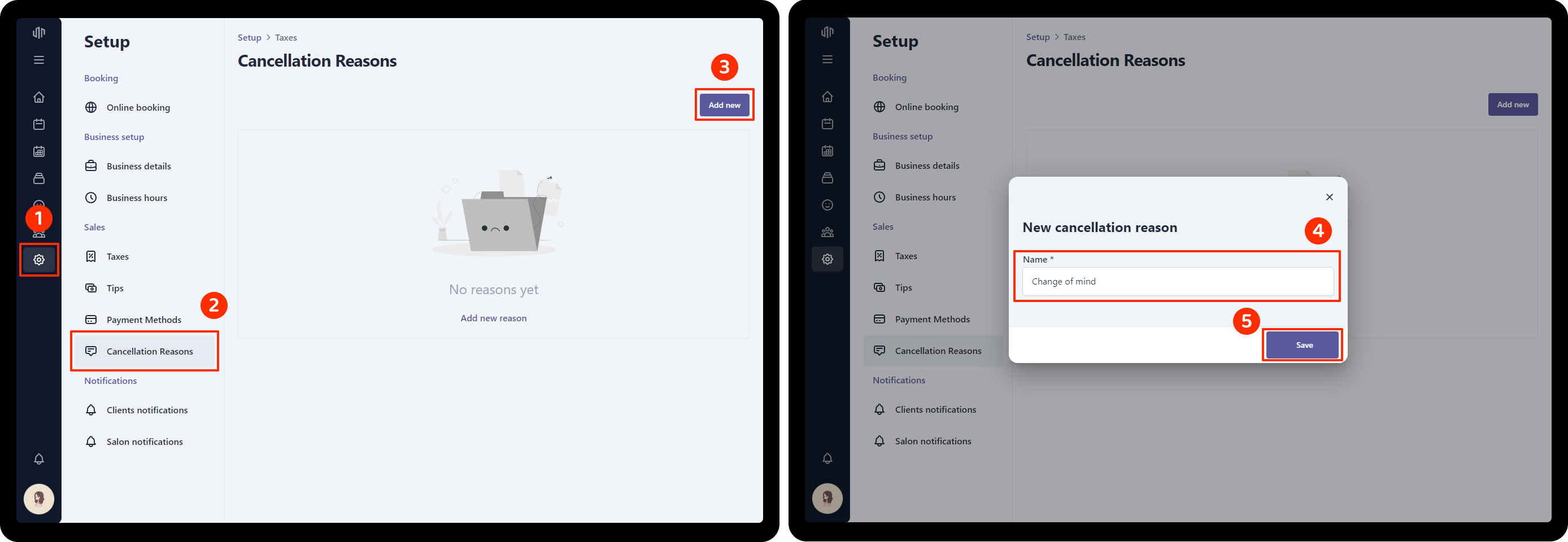 To add a cancellation reason: