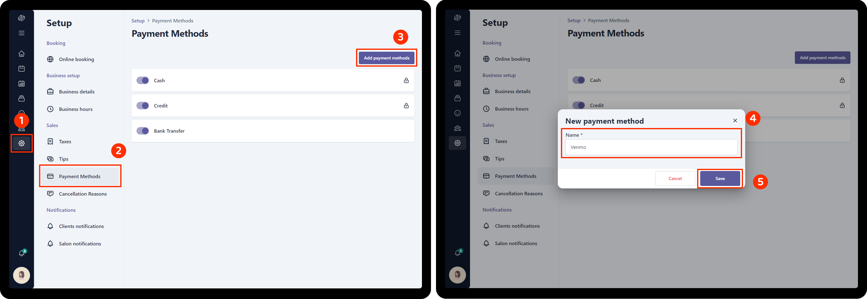 Setup payment methods