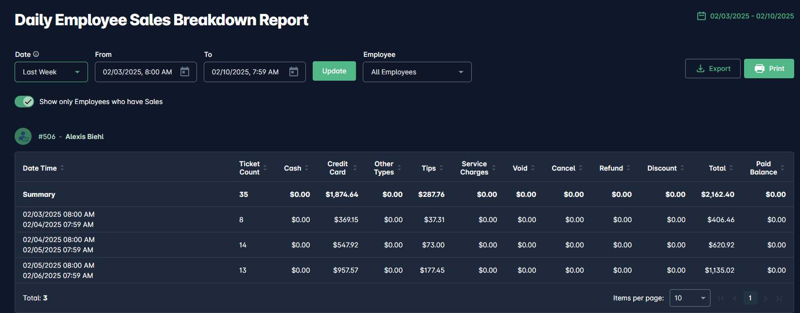 Daily Employee Sales Breakdown Report