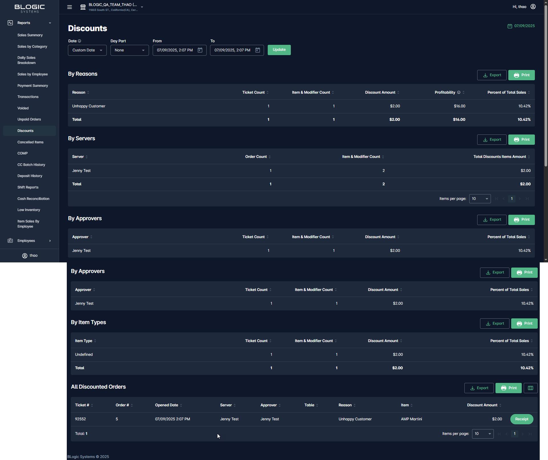 - Server: List out all employee who performed discount in ticket + Ticket Count: Total tickets which apply discount