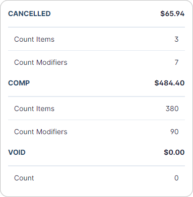 💡 This section is similar toCancelled,Voided,Compsections ofSale Summary Reportin POS Dashboard. {.is-info}