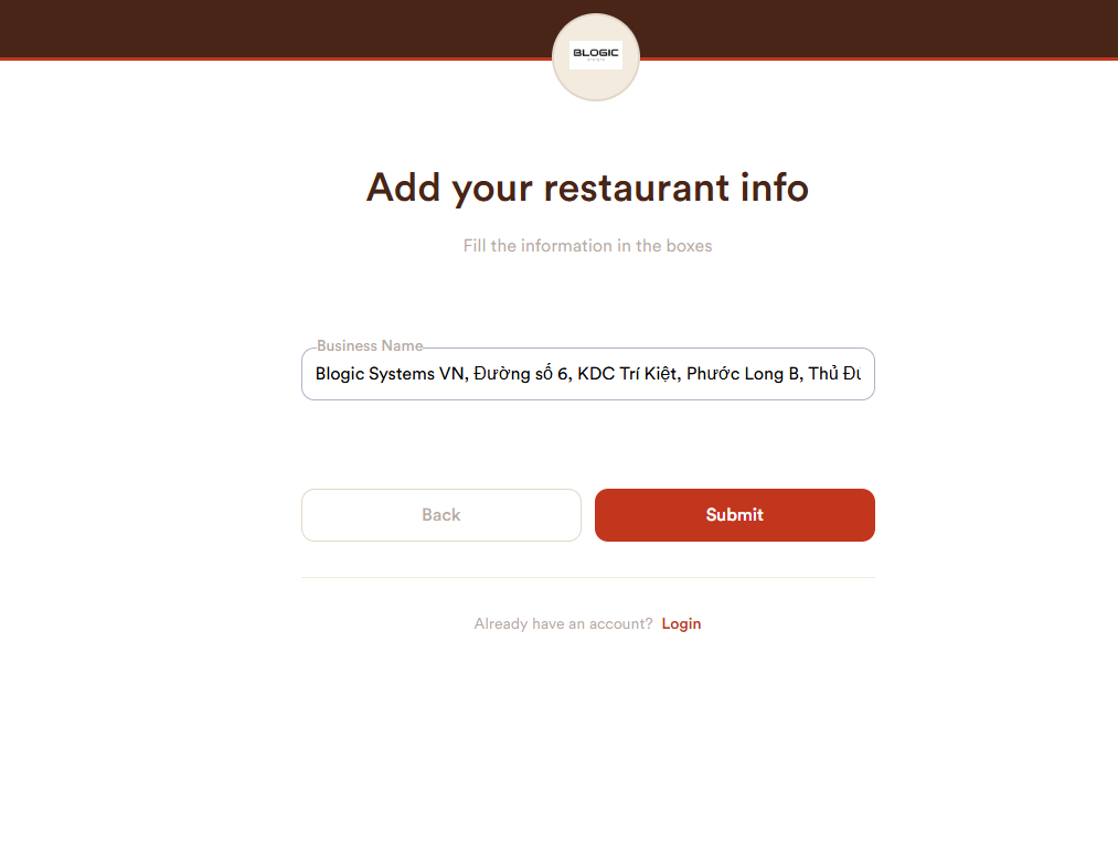 - Choose Restaurant as the business type.