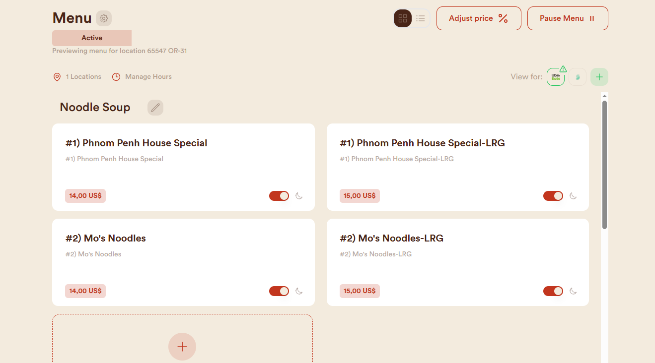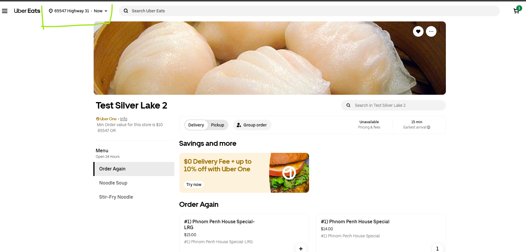 - If the store is not visible, try changing the location in the top-left section of Uber Eats.