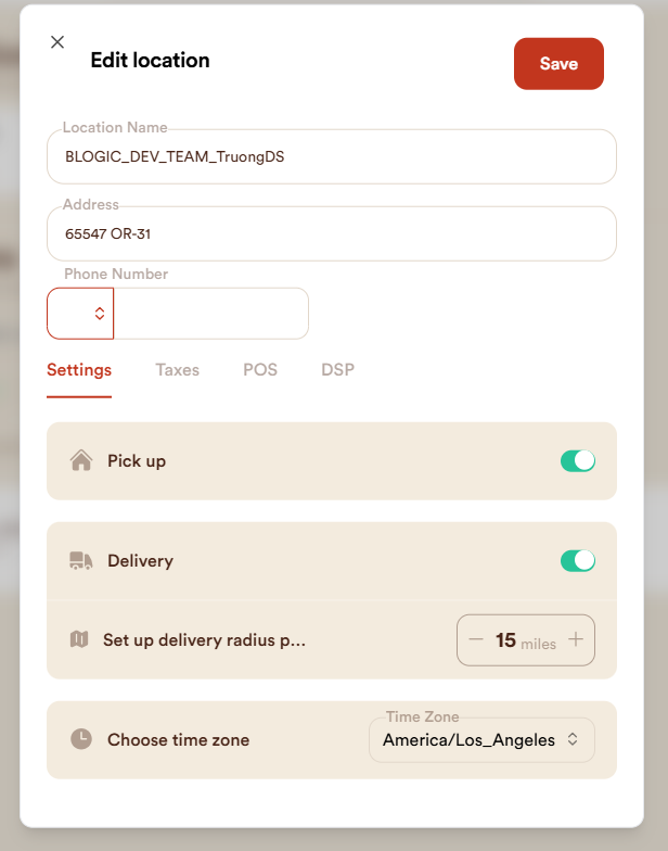- Ensure that all required fields are filled before saving Street Address, City, State, Zip Code, Email, Phone Number, Timezone.