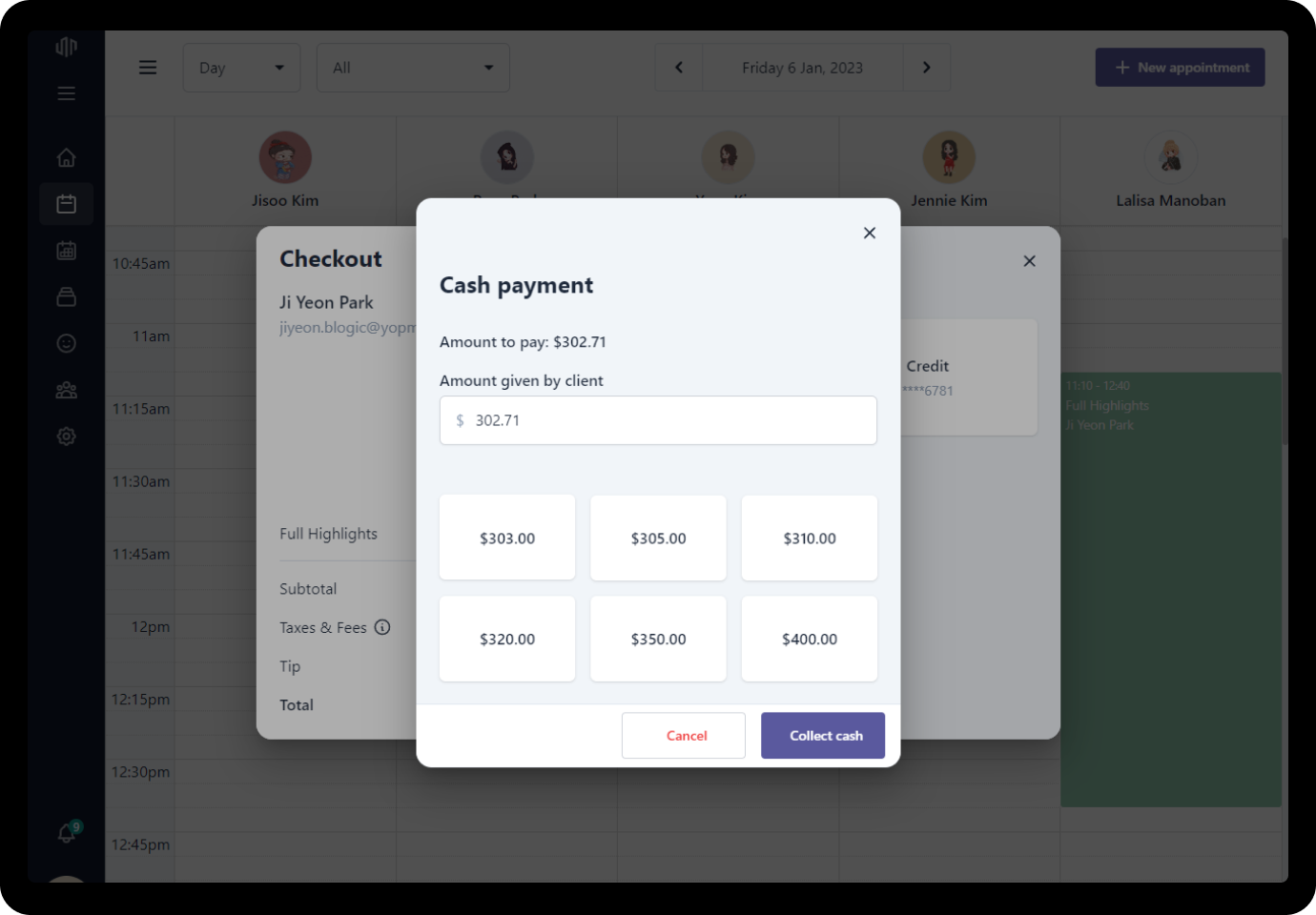 - Split payment. Client can pay by cash and credit card for an appointment.