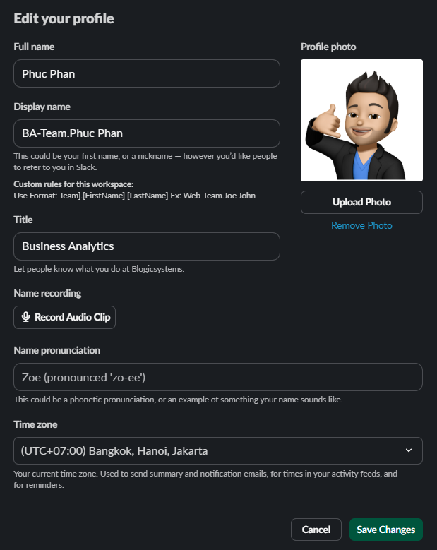 π If you're off for the day, update your Display Name to:POS-Team.Tuan Pham (Off)