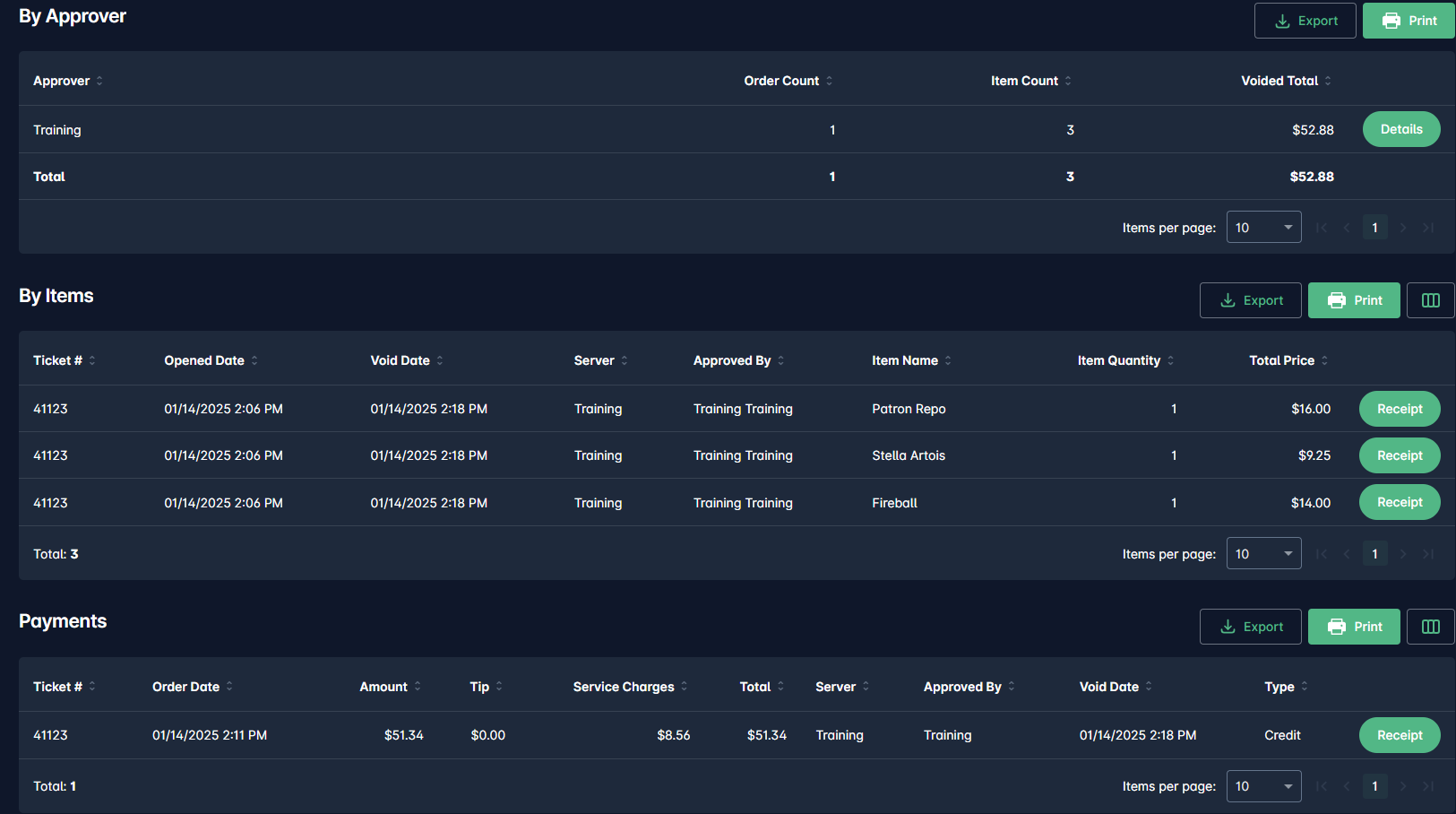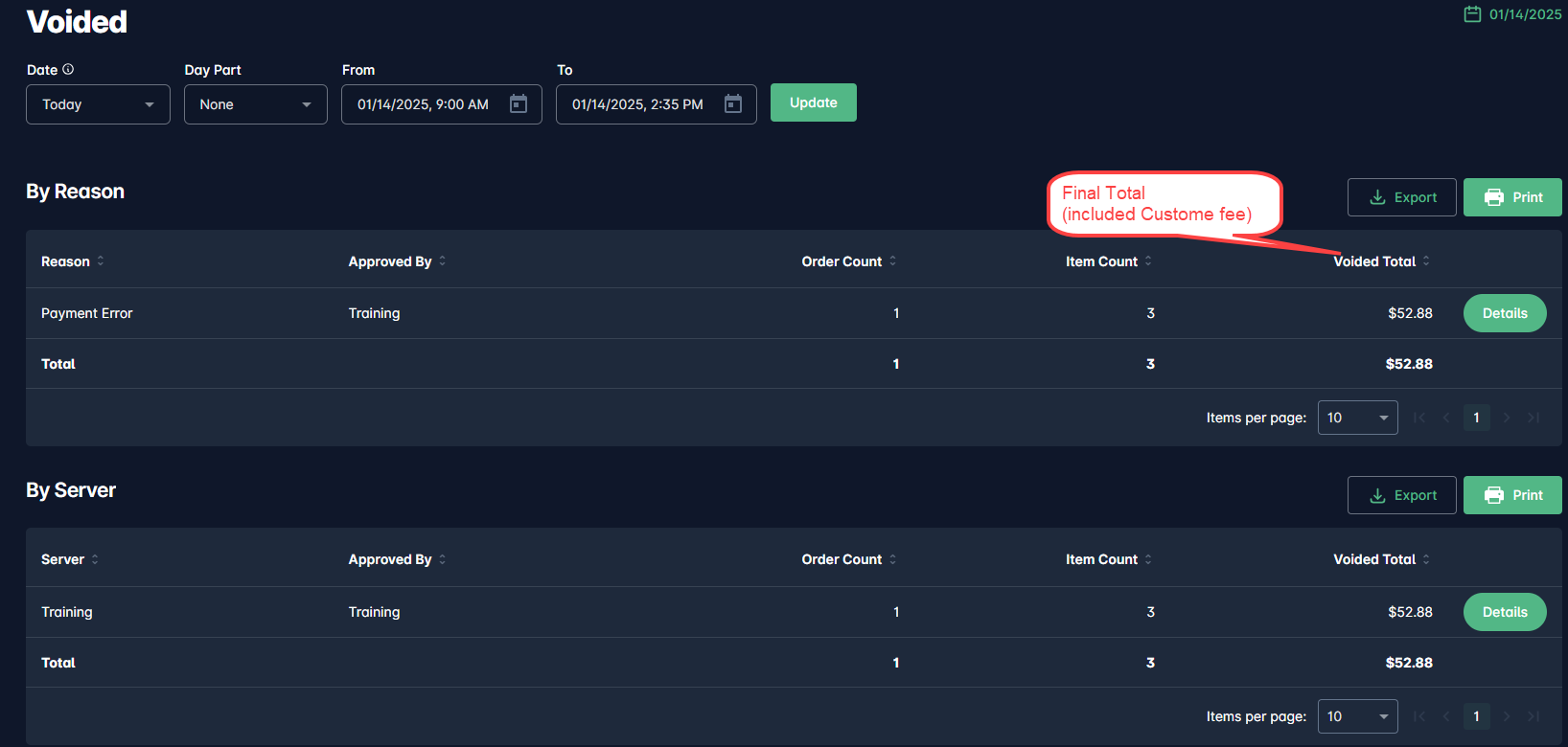 | Request list of voided by server | GetVoidReportGroupByEmployeeRequest |